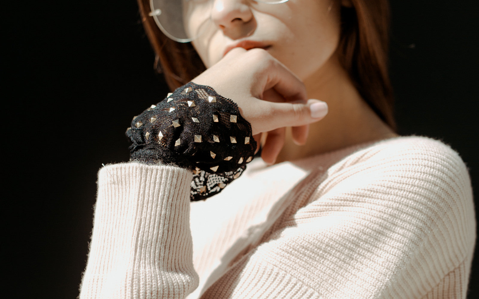 Exquisite Black Stretch Lace with Clear Rhinestone Crystals One set of cuffs creates a variety of different looks Expand your wardrobe instantly Sizes: S/M, L/XL (please check size chart) Material: Stretch Lace,...